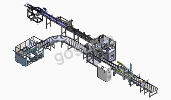 工藝流程:自動開箱--自動分道整理-自動裝箱--自動封箱